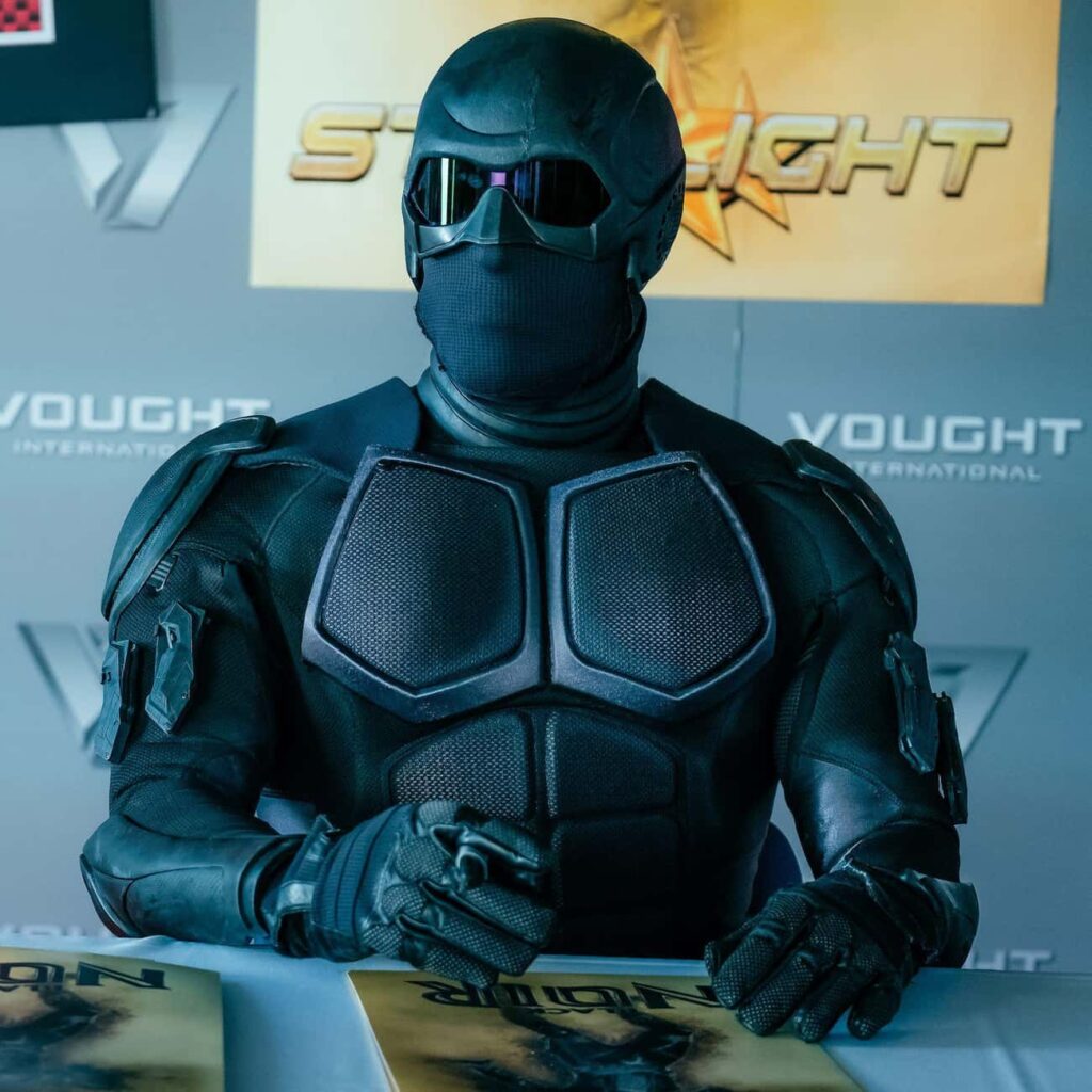 Black Noir is a man of mystery and silence, with skills that are as lethal as his past is shadowy. Played by Nathan Mitchell, he is Vought’s silent assassin, always on point and undeniably deadly. His combat prowess and intriguing anonymity make him a standout in a world loud with larger-than-life personalities.