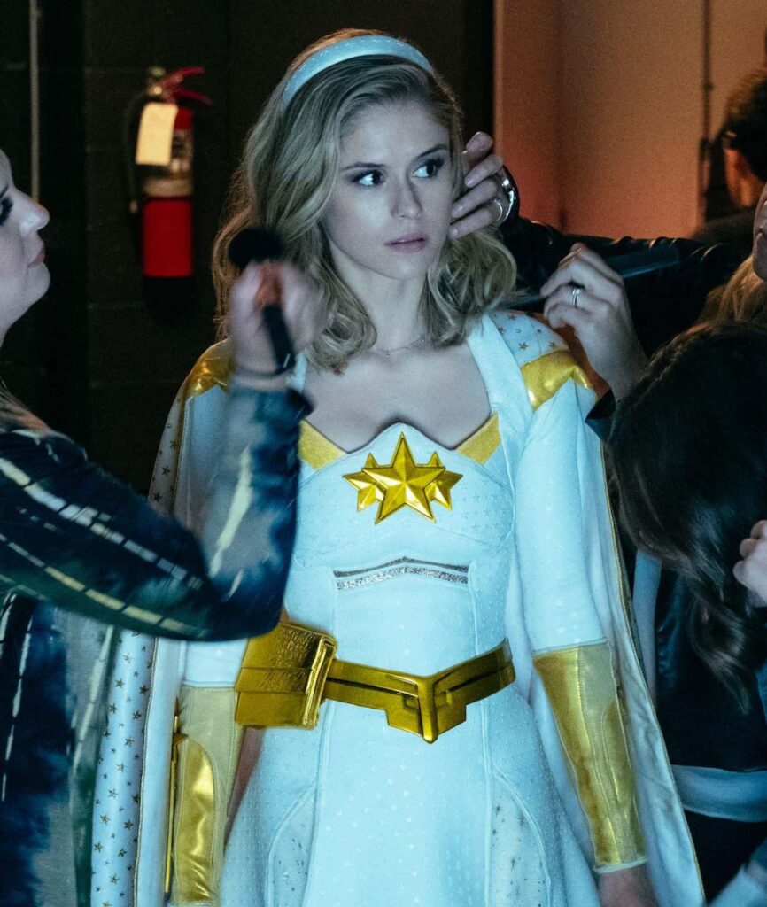 Starlight, played by Erin Moriarty, shines as the beacon of hope in a corrupted world. Her superpowers, like her enhanced strength and ability to absorb electricity, are matched by her inner strength and integrity. Annie’s journey from naive newcomer to a grounded heroine captures the essence of personal growth and heroism.