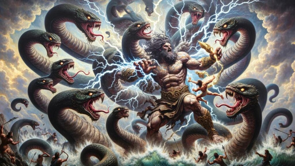 Typhon is often described as the deadliest monster in Greek mythology, a fearsome giant with a hundred snake heads that could breathe fire and create massive storms. His battle with Zeus for supremacy over the cosmos is legendary, showcasing his immense power and the threat he posed to the gods themselves.