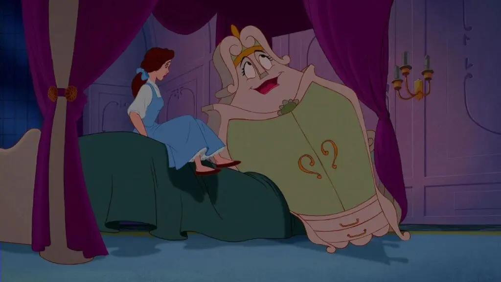 In “Beauty and the Beast,” the Wardrobe, also known as Madame de la Grande Bouche, offers much more than her comedic presence. A former opera singer turned into a wardrobe, she brings a blend of elegance, humor, and surprising bravery to the story. Her interactions with Belle showcase a nurturing and protective side, making her a unique and supportive character.